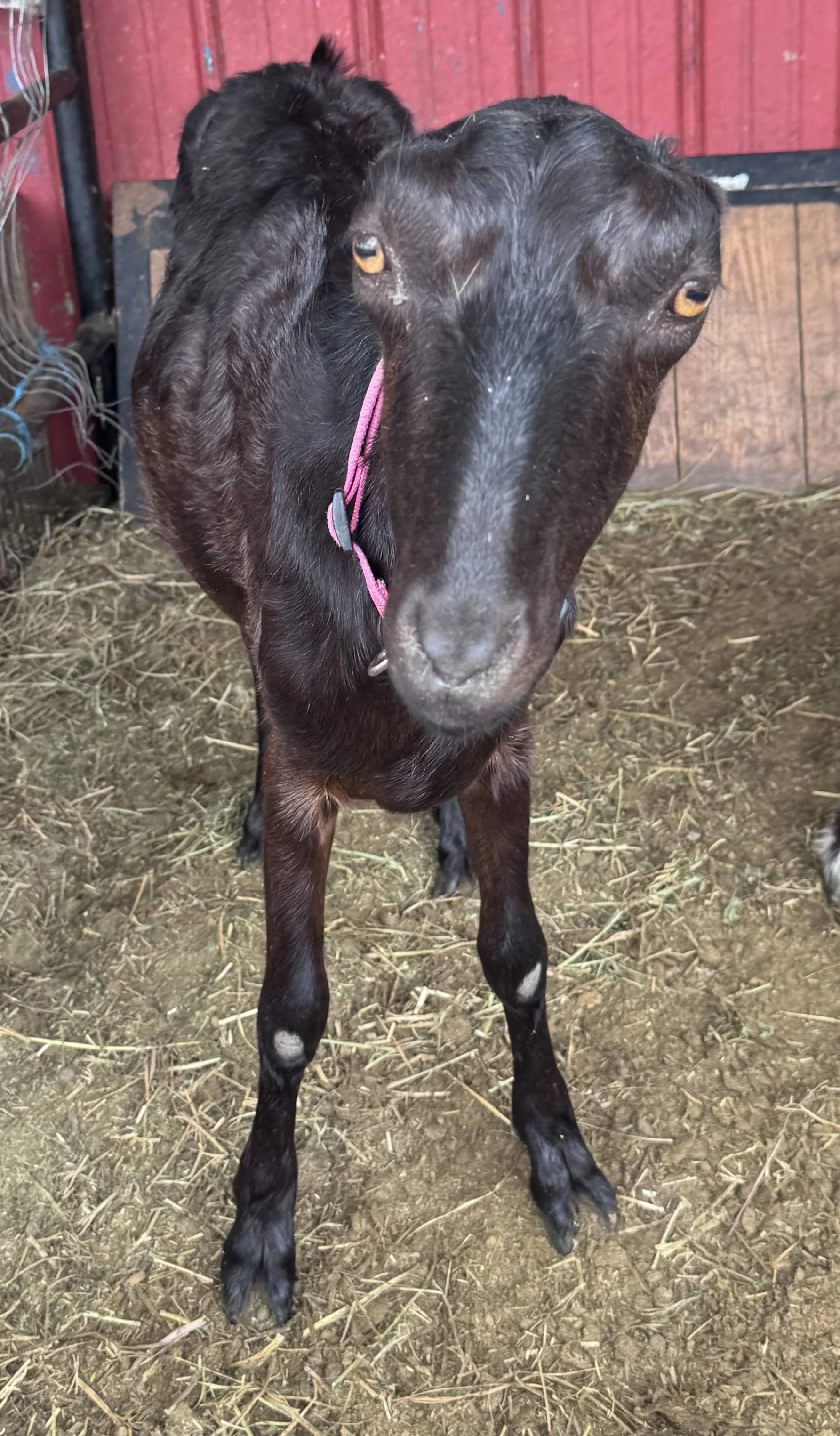 Tessa is everyone’s best friend. She wants to snuggle and is the first one at the door for treats. She also freshened as young yearling for the first time last year and has an extremely promising udder. Shape, texture, teat size and placement, medial, the whole package. It’s just little as she’s still in her awkward teenage years but as she matures should be incredible. Super easy to milk, stands like a pro. Could easily milk both with a machine and by hand.