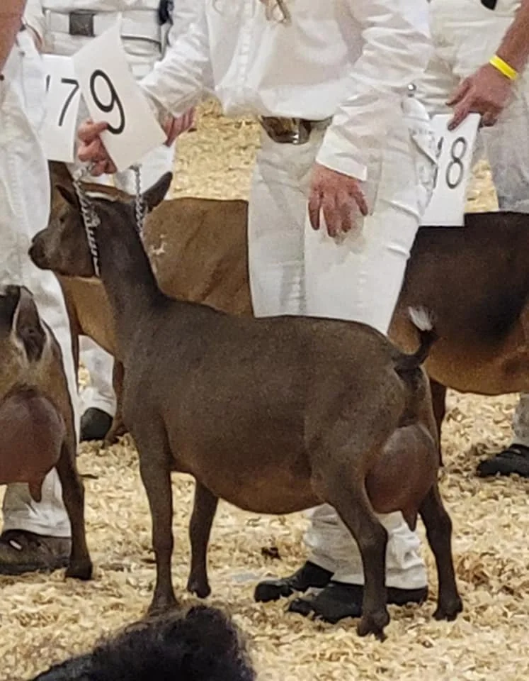 Ya Ya is a gorgeous junior doe with lots of length and correct conformation. We’re psyched to bring her to the shows next year as a dry yearling!