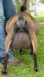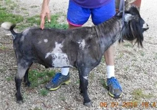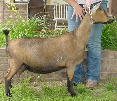Houdini is a lover, both of his lady friends and his human friends. He leads by a pinky, is always the first to run up for scratches, and has the most easy going personality. He is an all around gentleman. We have our first Houdini kids on the ground with the spring 2022 kidding season and so are excited to see how they develop! He has a stellar pedigree backing him up.